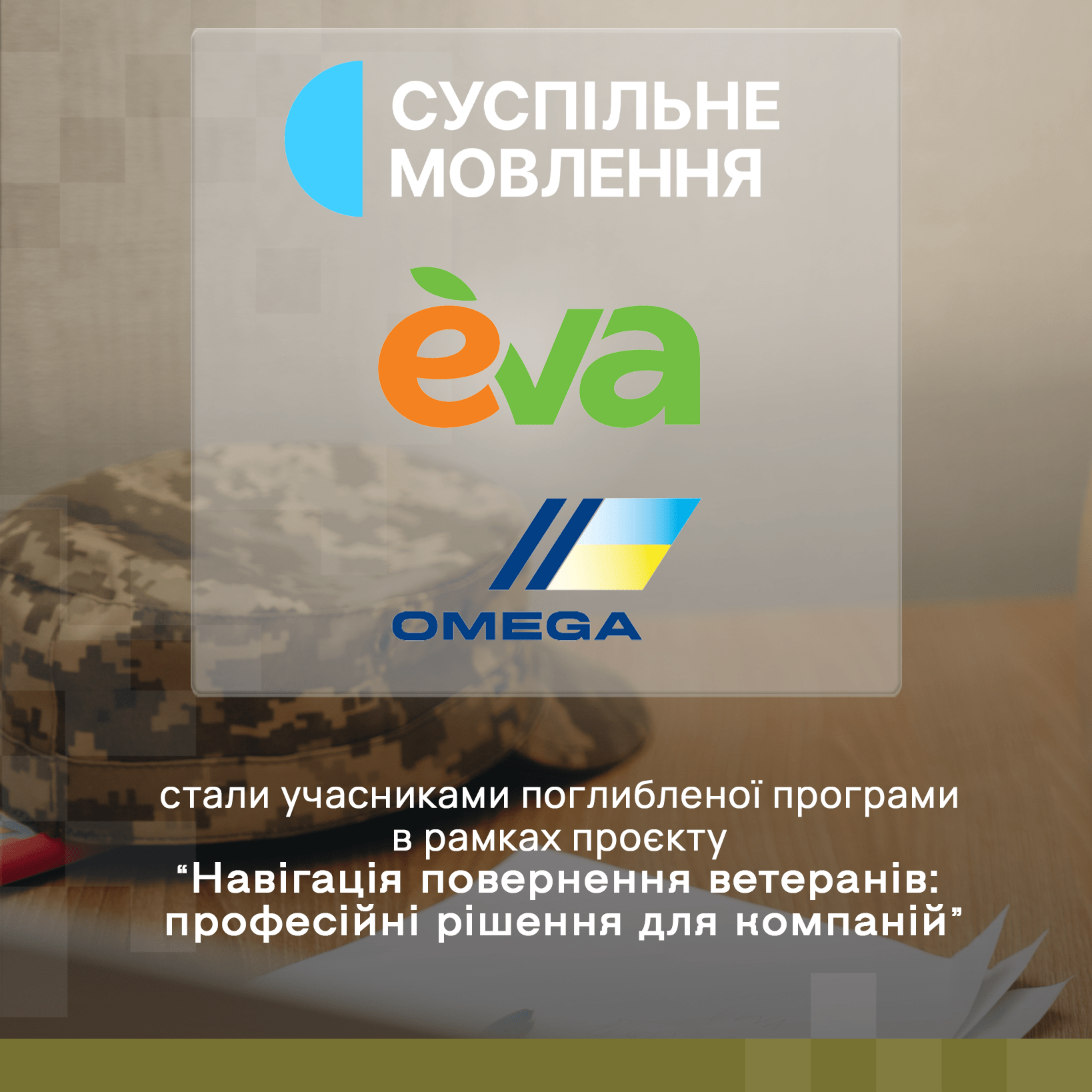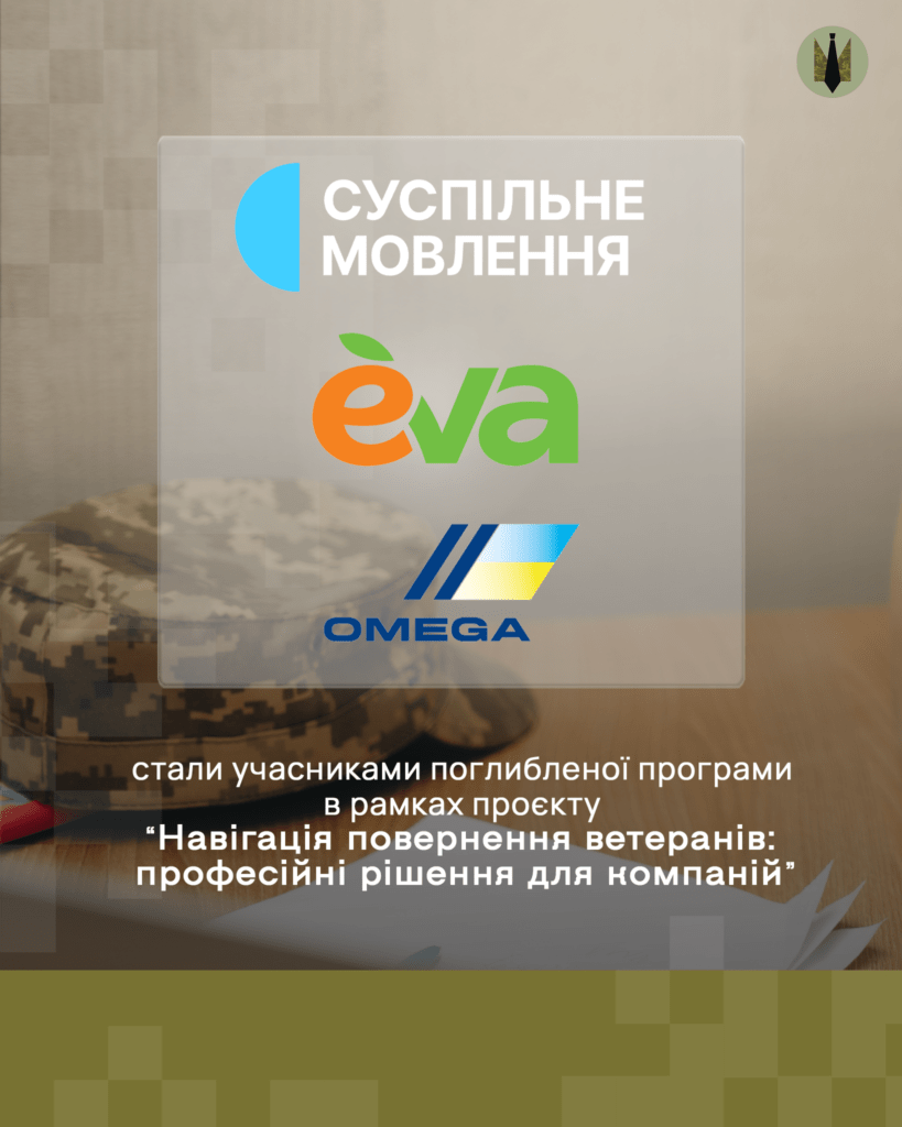 Лінія магазинів EVA, Суспільне Мовлення, Omega Company стали компаніями-переможцями поглибленої навчально-консультаційної програми проєкту “Навігація повернення ветеранів: професійні рішення для компаній”! Вітаємо!